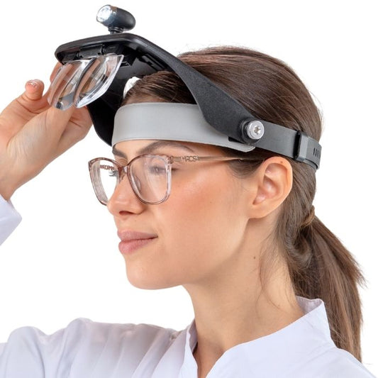 2.5倍 または 3.5倍 レンズと 80,000 ルーメンのライト付き V1 PRO 拡大鏡
