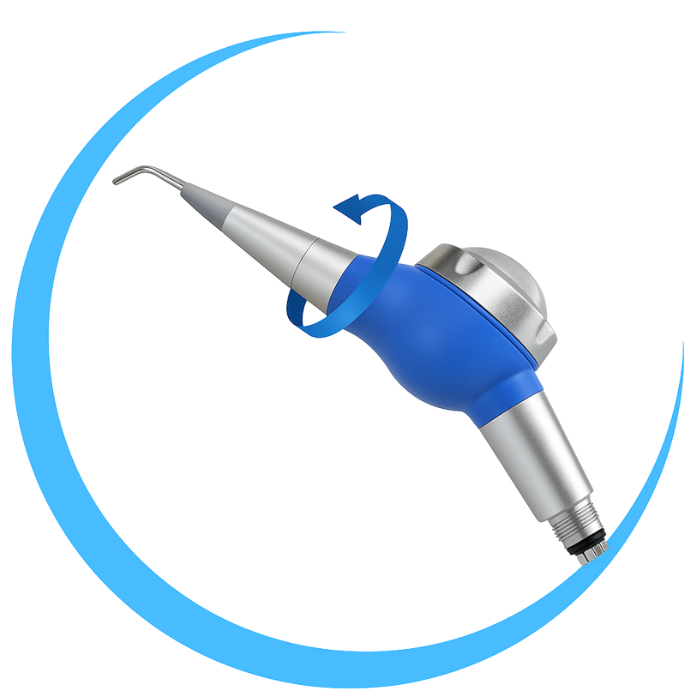 魅力的で人間工学に基づいたデザインにより、正確で快適な操作が可能です。360°回転により、届きにくい部分の歯石を効果的に除去します。噴射は均一に拡散し、飛び散りを防ぎ、システムは逆流や詰まりを防ぐために特別に設計されています。